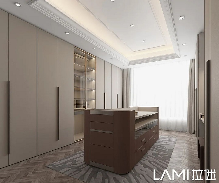 多層板之間鑲嵌燈帶,視線無遮擋,明暗還可智能調(diào)節(jié),3000k暖光入眼極度舒適。