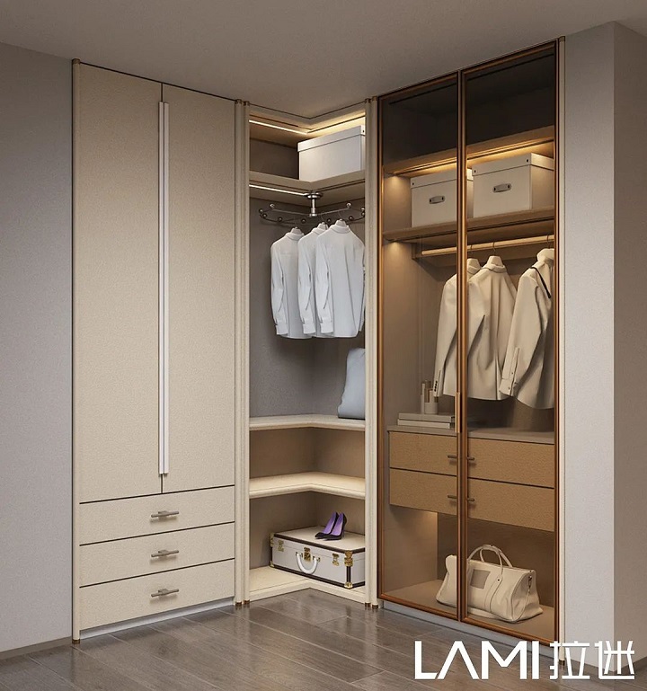 柜體安裝自動開合阻尼器,45°切角,開合自帶緩沖,靜音無聲更安全。