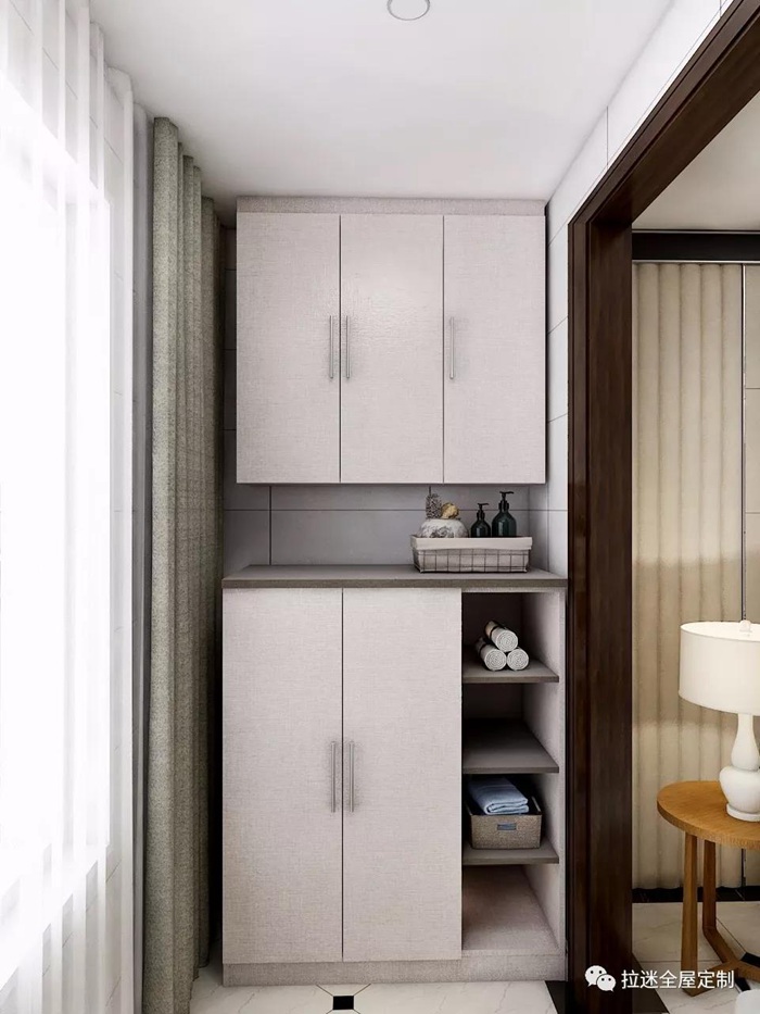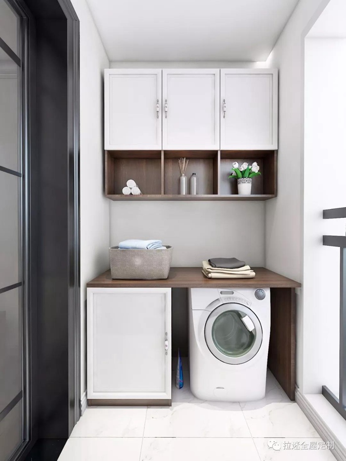 大面積的收納空間把洗衣機及一切雜亂都藏于柜內;