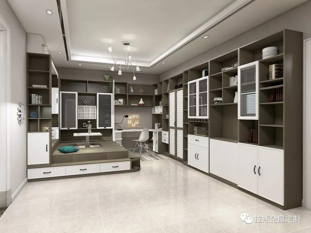 如果書房夠大的話,榻榻米會給你提供一種更加舒適的閱讀體驗。它可以承載多種功能,實現儲物、閱讀、會客、休息一體化。