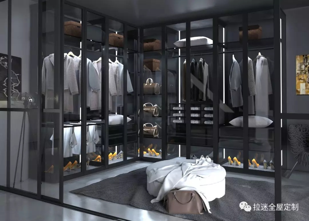 衣帽間設計時,可在衣柜內安裝可感應的照明系統,柜門開啟內部燈光便自動打開,讓你的“目標”一目了然。