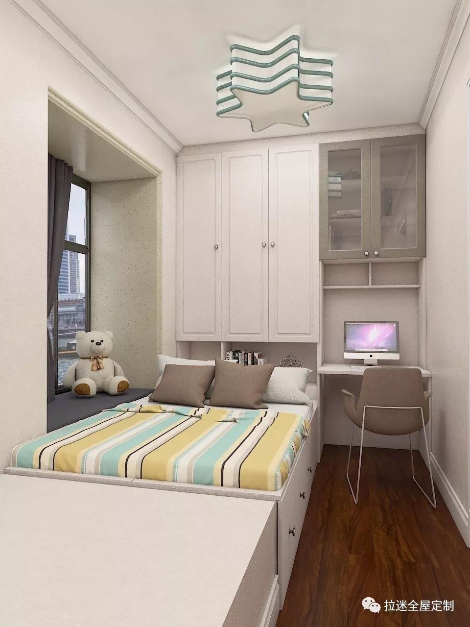 當(dāng)榻榻米遇上衣柜、書柜、飄窗柜等豐富功能柜,不到10㎡的小房間就能輸出儲(chǔ)物、會(huì)客、工作、娛樂、休息等諸多功能。