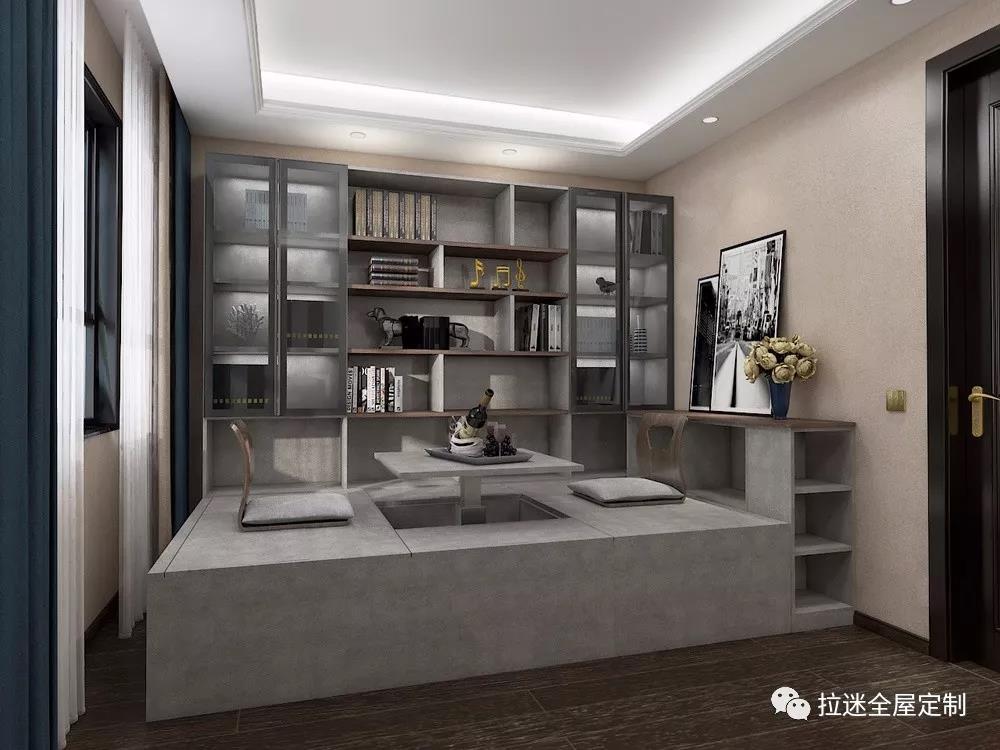 配上書柜的榻榻米收納力就一發(fā)不可收拾了,妥妥的裝下全家藏書外,還能任性的擺放各種藝術(shù)品和學(xué)習(xí)周邊。