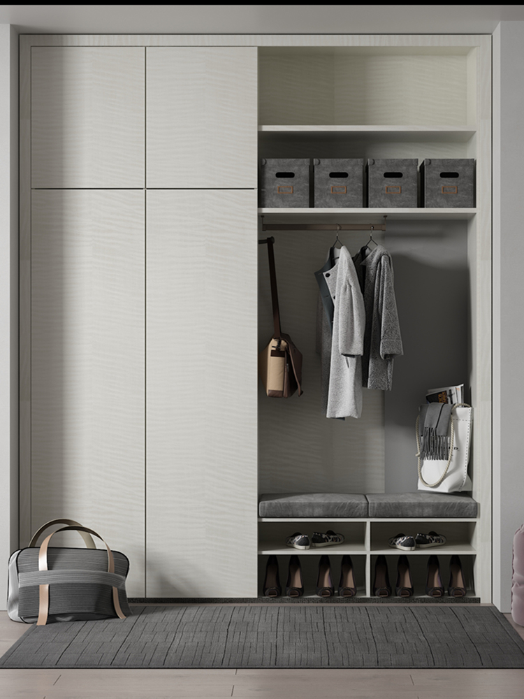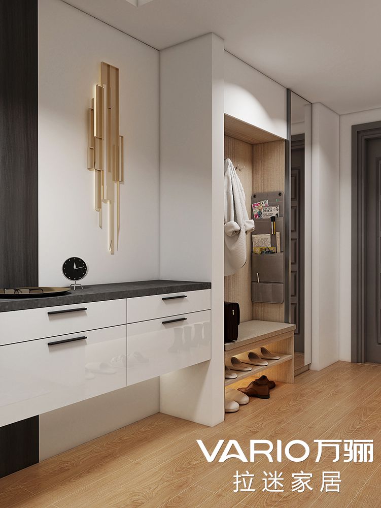 把鞋柜、衣柜、換鞋凳、換衣鏡、儲物柜等合理搭配布置,