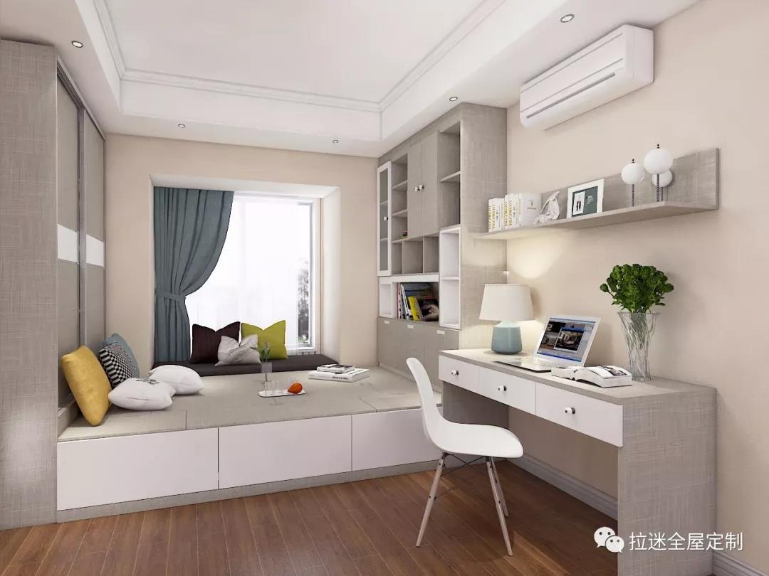 在臥室中設計榻榻米,能給人帶來一種輕松、休閑的生活氛圍。增加的地臺與大體量的床渾然一體,不僅節省了空間,還能提供更多的收納功能。受房型限制,有些臥室放置一張床后,其余活動空間就會變得十分尷尬,甚至留有不必要的畸零空間,使房間整體看上去非常零碎。采用定制的榻榻米設計后,空間格局更為完整和美觀,無形中將實用性與觀賞性融為一體。